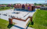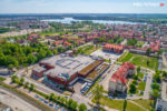 Kilka ujęć prezentujących galerię „Brama Mazur” w Ełku w piękny wiosenny dzień.